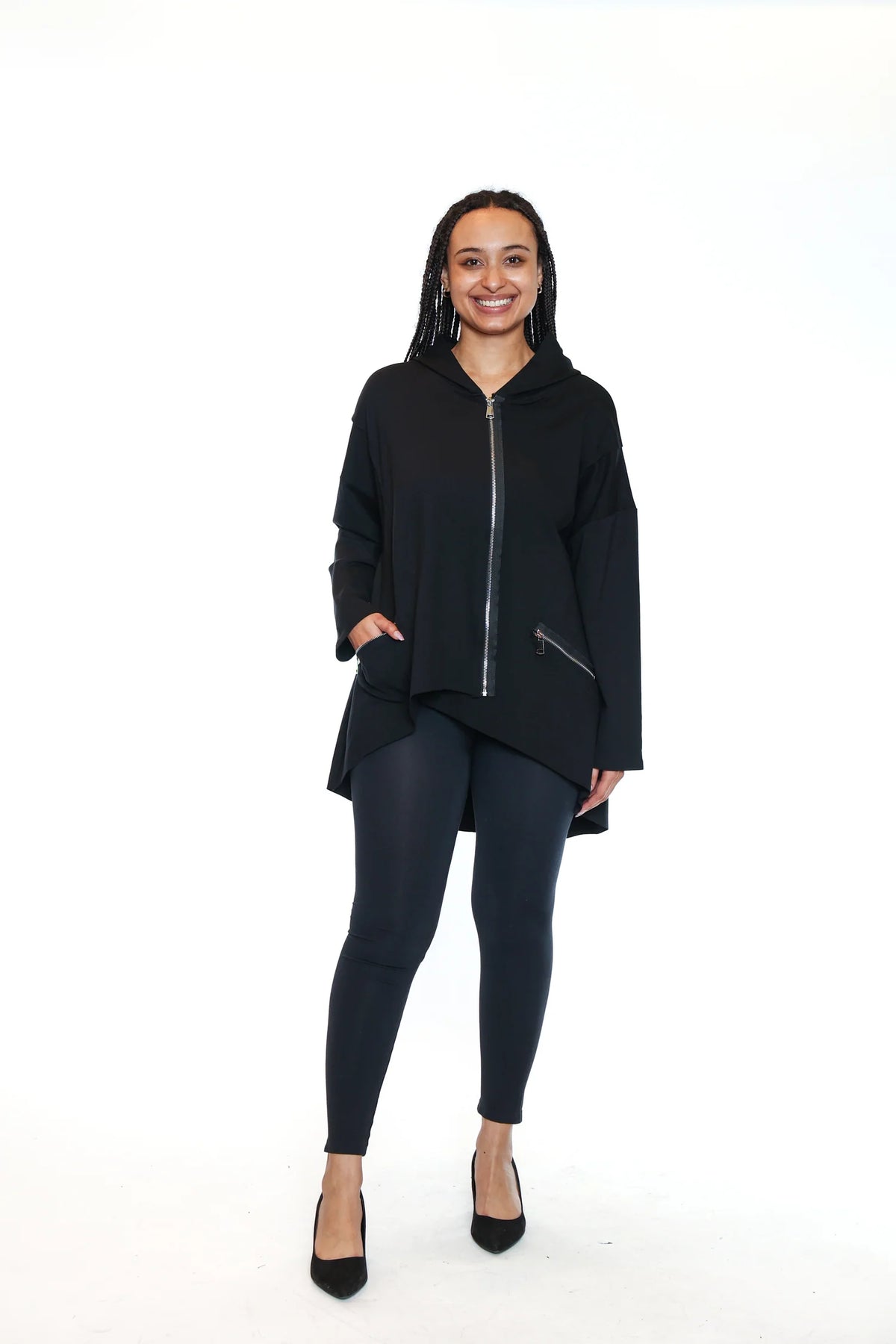 Throw on this cozy zip-up swing jacket and instantly level up your comfort game! With its relaxed, oversized silhouette, it's perfect for layering over your favorite tees or keeping things casual on chilly days. The full zip front makes it super easy to adjust your vibe—wear it open for an effortless look or zipped up for extra warmth. Soft sweatshirt fabric feels like a hug, while the swing cut gives you plenty of room to move and groove. Whether you're running errands, hanging with friends, or just vibing at home, this jacket is about to become your new go-to piece. Cozy never looked so good!