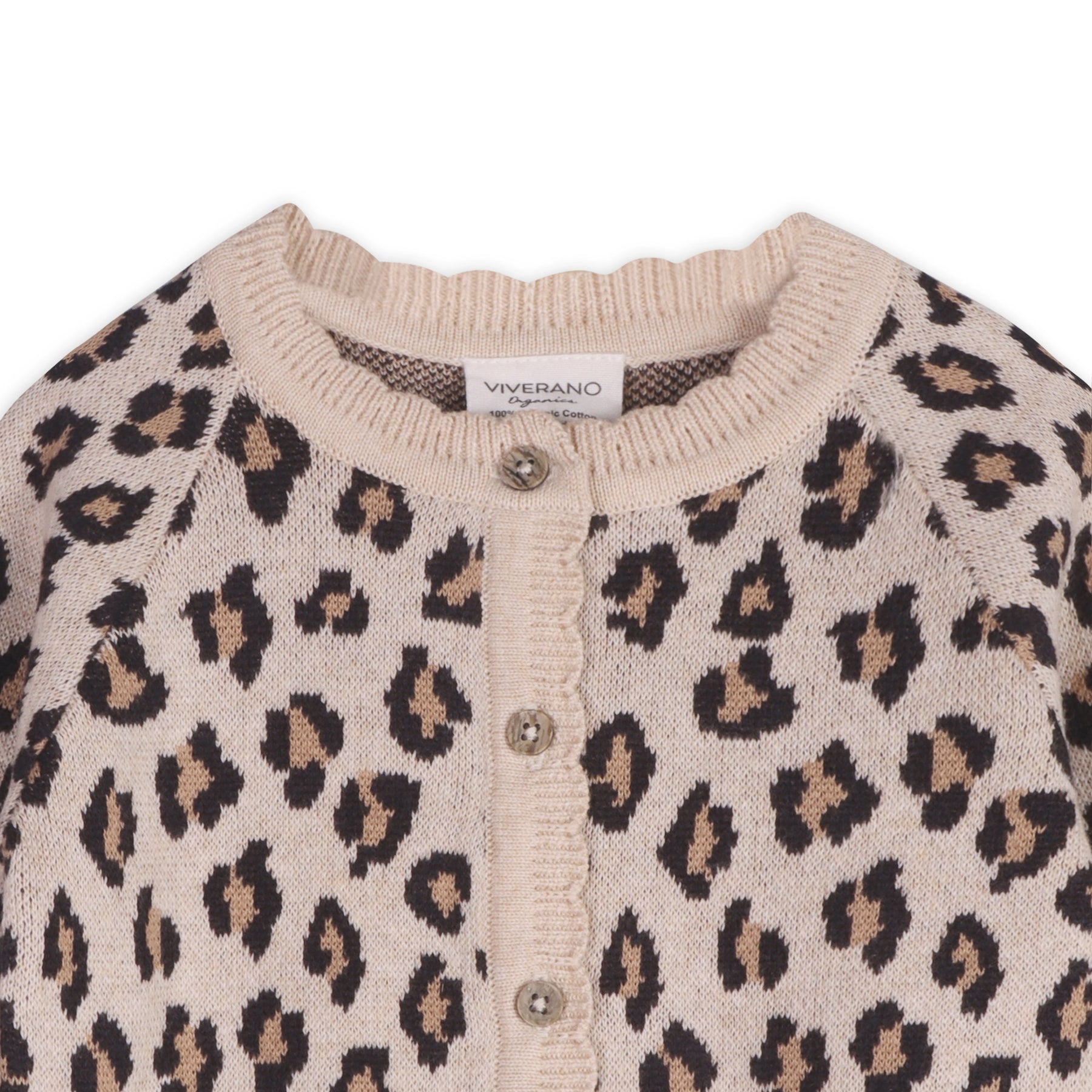 Introduce your little one to effortless style with this charming leopard jacquard baby cardigan. Crafted from soft, breathable sweater knit fabric, it's designed to keep her cozy while looking absolutely adorable. The classic leopard pattern adds a touch of playful sophistication to any outfit, making it perfect for layering over dresses or pairing with basics. Easy to slip on and off, this versatile piece transitions seamlessly from playdates to family gatherings. Give your baby girl the comfort and style she deserves.
