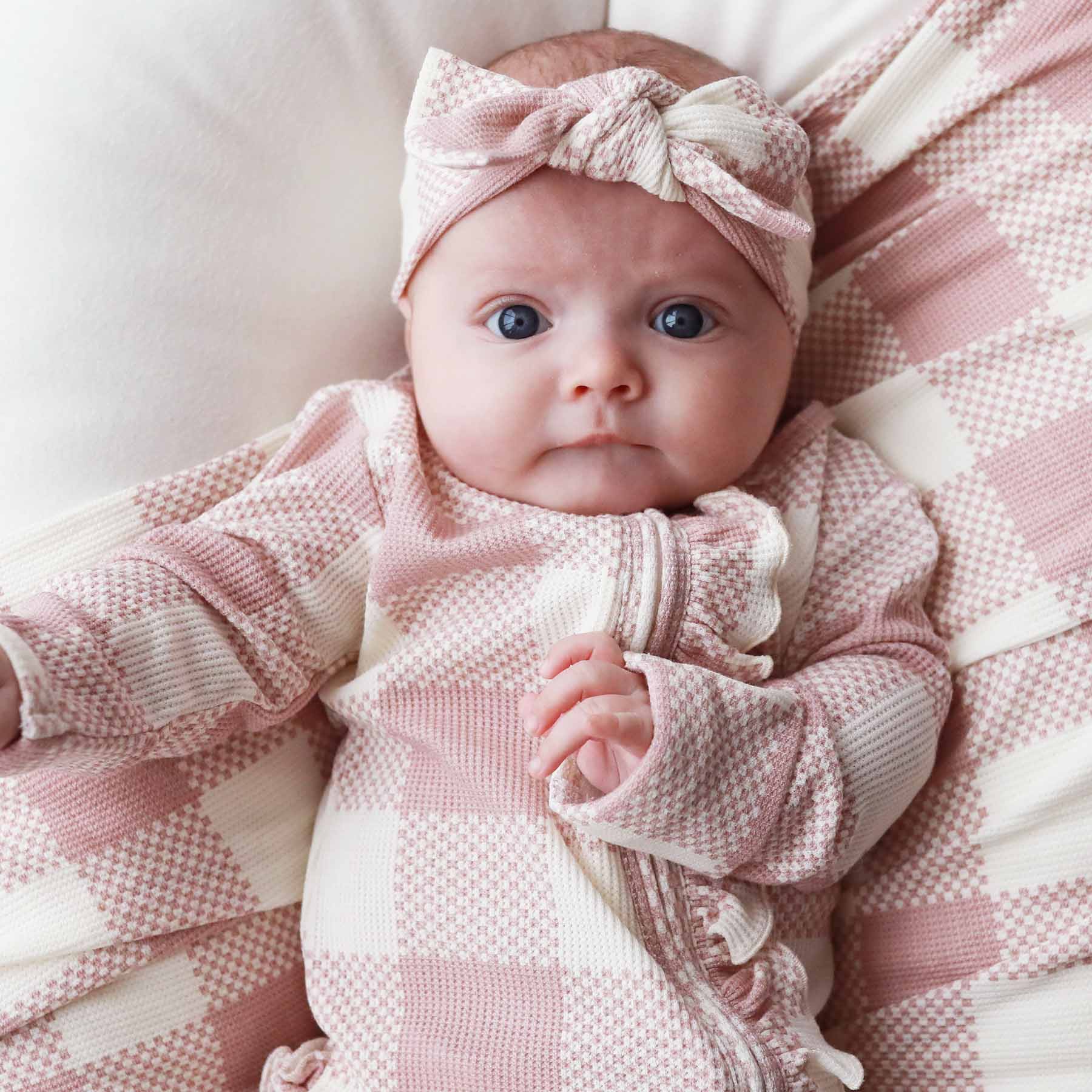 Discover the Big Check Waffle Ruffle Footie—your baby’s new go-to for everyday comfort. Made from breathable bamboo fabric, it keeps little ones cozy without overheating. The full-length zipper makes dressing and diaper changes quick and easy, while the enclosed feet ensure tiny toes stay warm and snug. Featuring a fresh take on a classic large checkered pattern with a subtle smaller check woven in, this footie combines timeless style with unbeatable softness. Perfect for daily wear, it’s sure to become a favorite you reach for again and again.