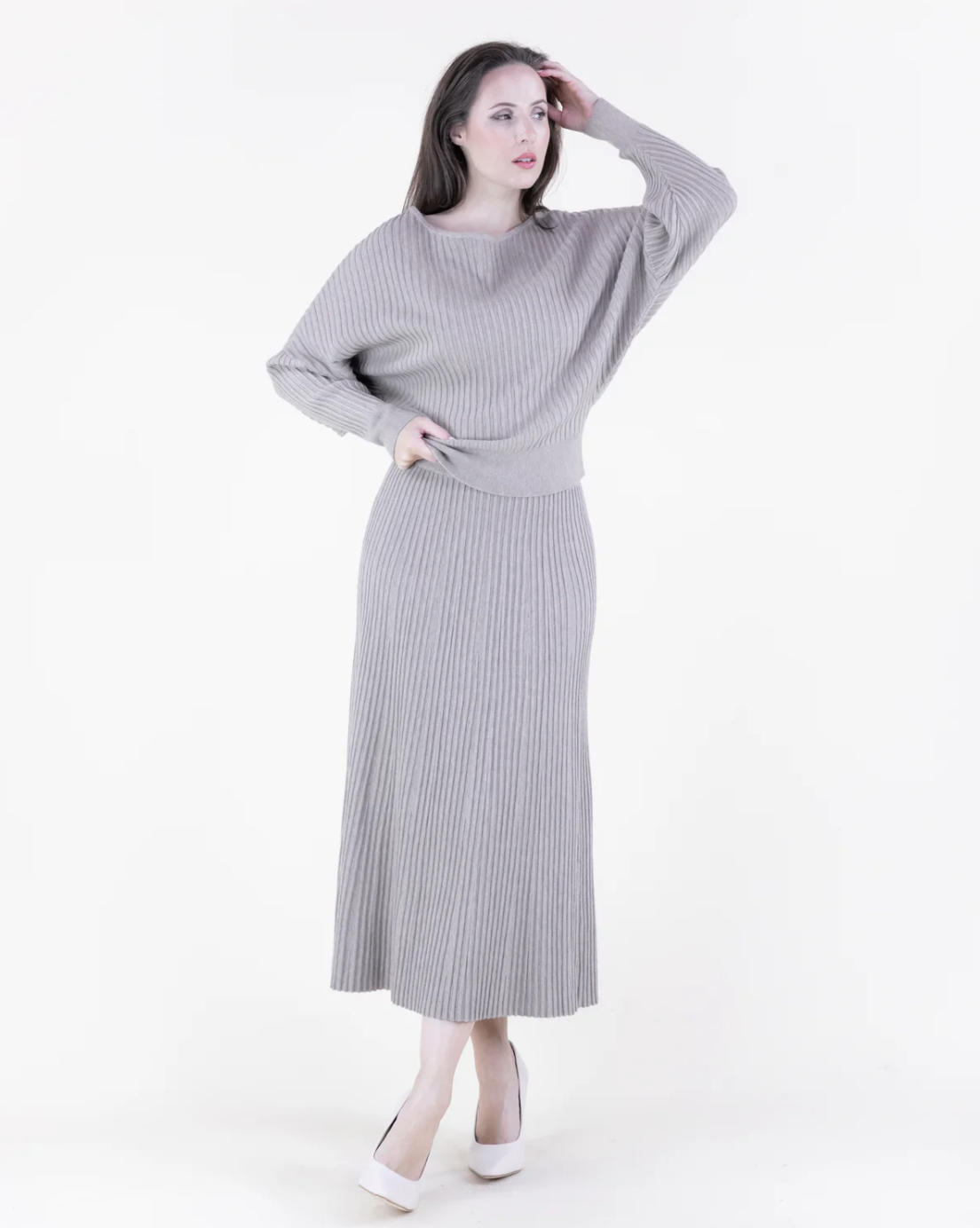 The Desert Drift Ribbed Skirt offers a refined silhouette with its soft, ribbed fabric and effortless pull-on design. This skirt combines comfort and elegance, making it an ideal choice for both casual and polished looks. Its sleek fit flatters the figure while providing ease of wear throughout the day.