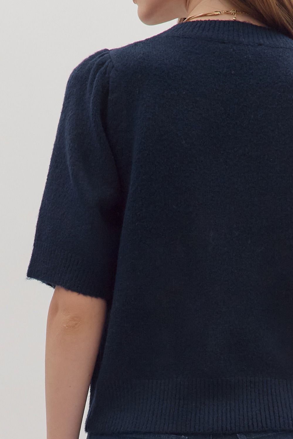 Elevate your wardrobe with the Francine Floral Sweater, a sophisticated knit top featuring elegant short puff sleeves and delicate floral applique detailing. Crafted from medium-weight, non-sheer knit fabric, this unlined piece offers both comfort and refinement, making it perfect for polished, everyday looks.
