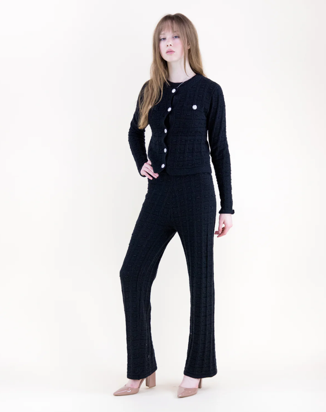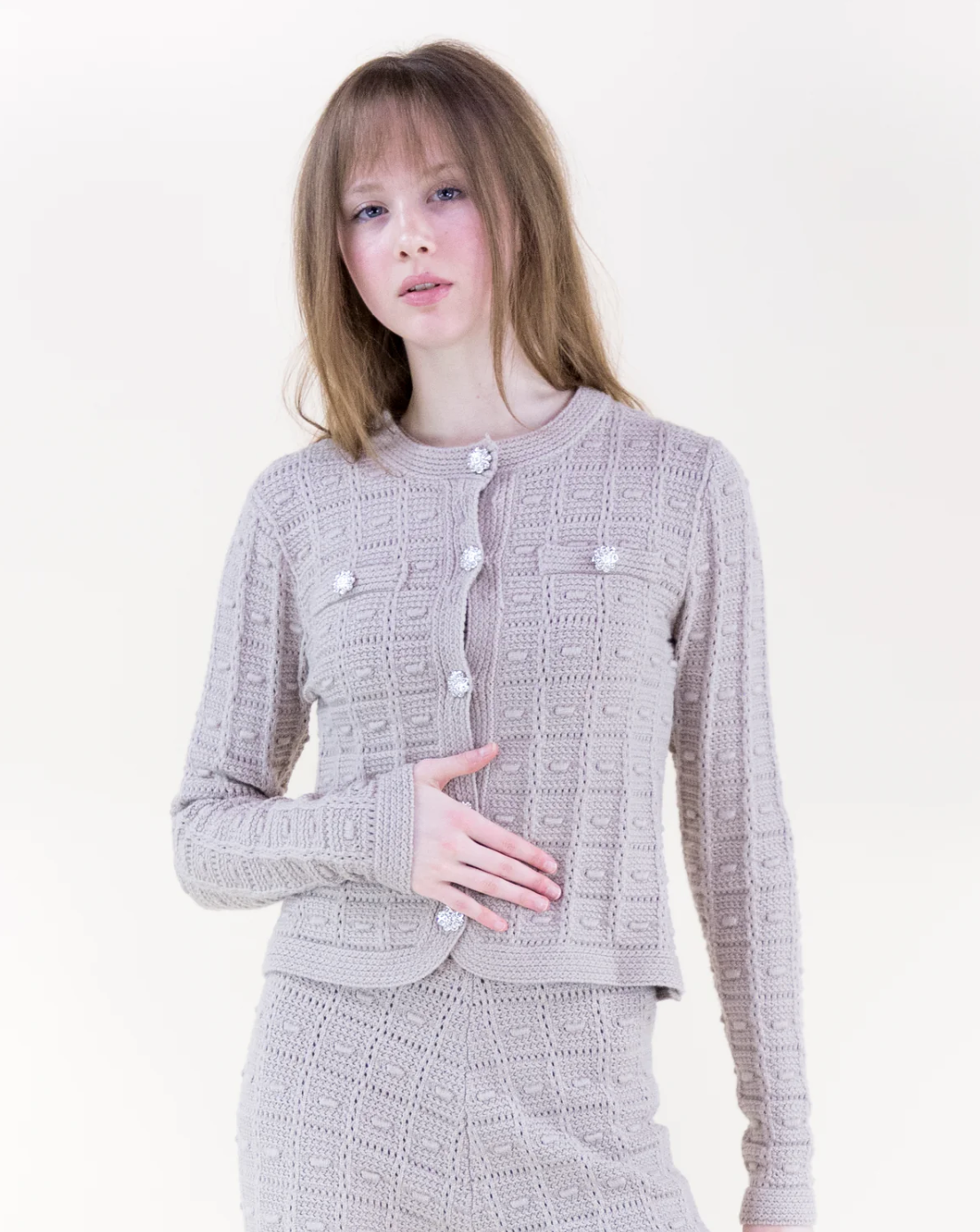 Layer with purpose in the Paloma Knit Cardigan, featuring exquisite Andalusian stitch detailing that elevates any ensemble. This boxy-cut cardigan offers a relaxed, flattering silhouette perfect for effortless styling, while practical patch pockets add both function and charm. Crafted from soft knit fabric, it provides warmth and comfort without bulk. Whether you're dressing up a simple tee or adding dimension to your favorite dress, this versatile piece becomes an instant favorite you'll wear again and again.