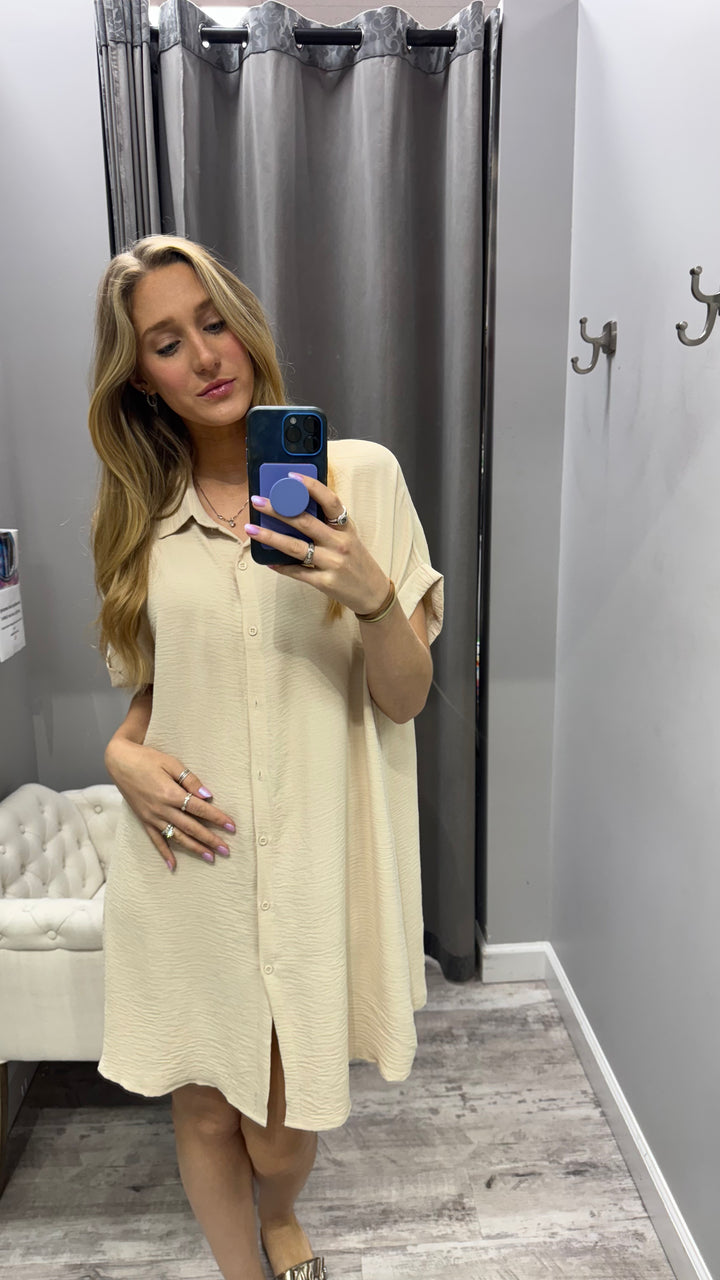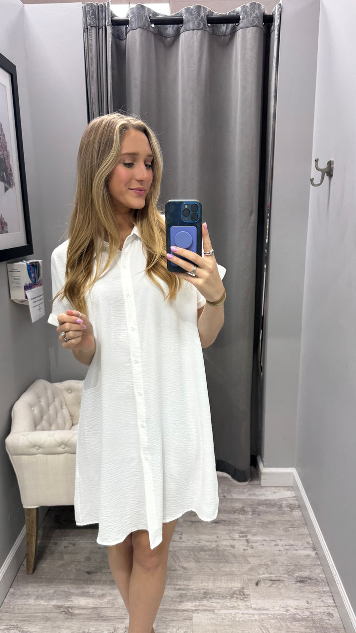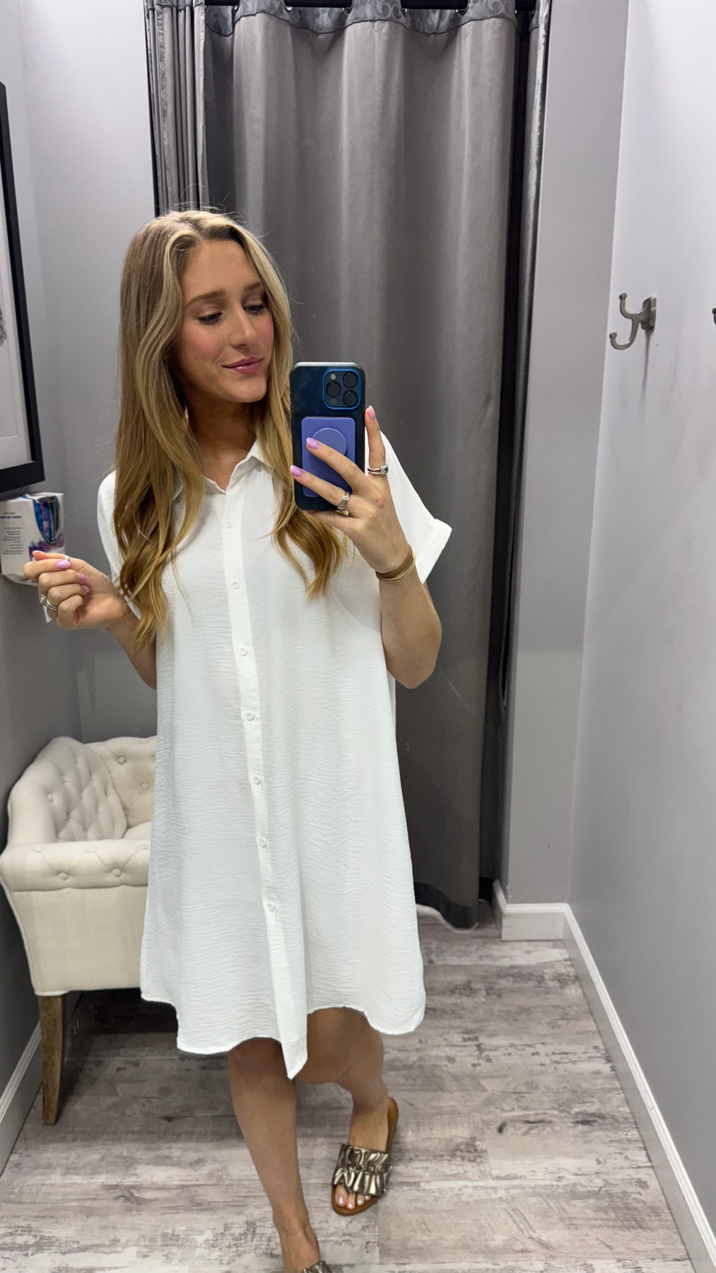 Feel comfortable and stylish in our Boardwalk Bliss Shirt Dress. Designed as a short button-up dress with a collared neckline, this dress is perfect for any casual occasion. Enjoy the ease of versatility and effortless fashion with this must-have piece.