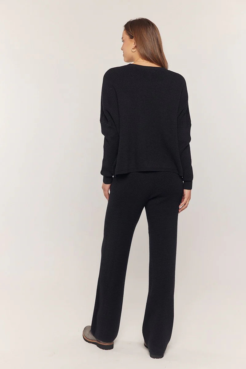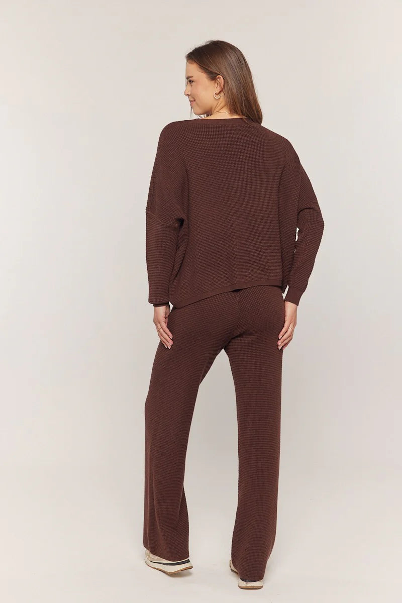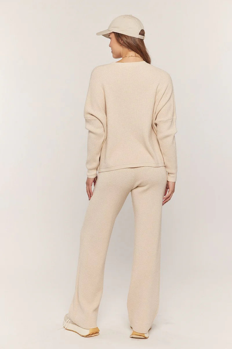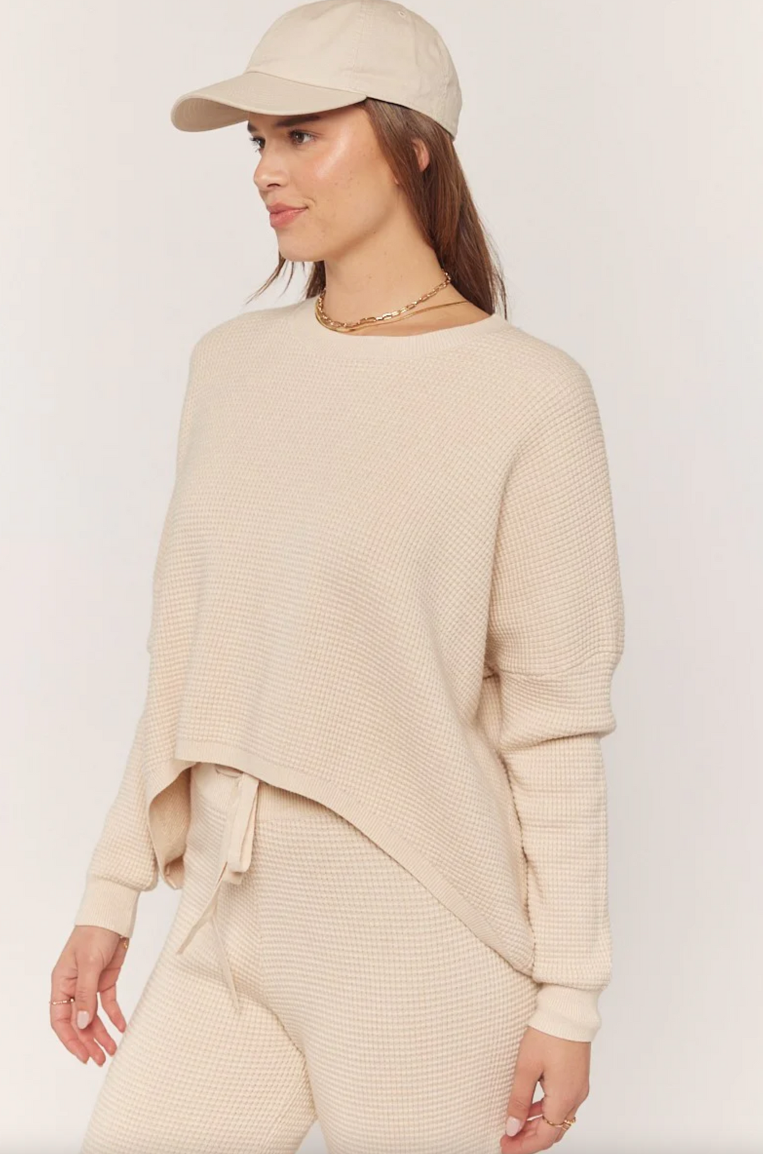 Take a break and relax with this Day Off Waffle Sweater. Its boxy style and round neck make for a stylish and comfortable look, while the soft knit waffle texture is perfect for a cozy, casual fit. Treat yourself and add some flair to your wardrobe.