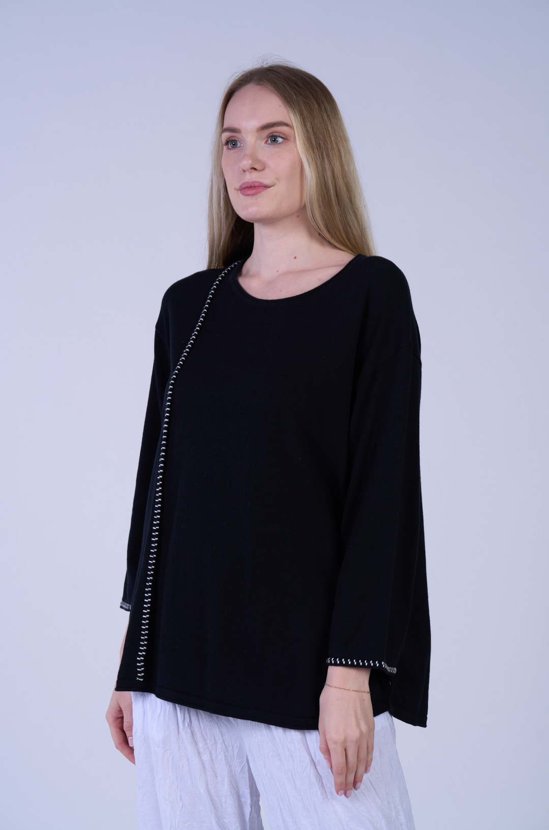 Elevate your spring wardrobe with our In a Stitch Sweater. This black long sweater features delicate stitch detailing for a touch of sophistication. Stay warm and stylish this season with this must-have piece.