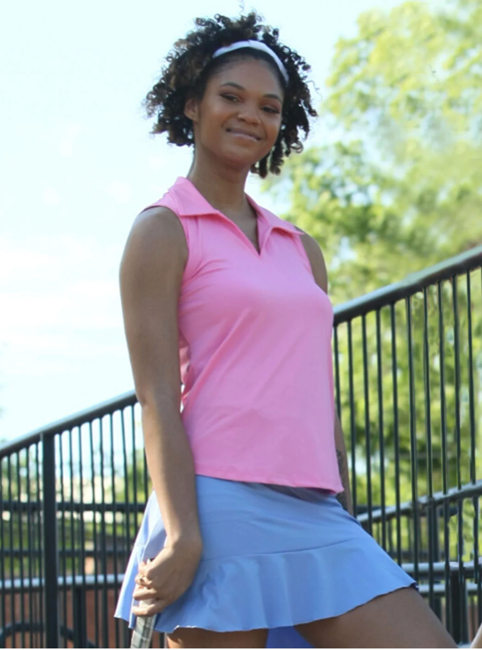 The Madison Flounce Skort in Periwinkle is the perfect skort for the court! Its flounce and flare add a touch of cuteness and sass, while the Calla top pairs perfectly to create a stylish and effortless look. Look great and feel confident on the court with the Madison!
